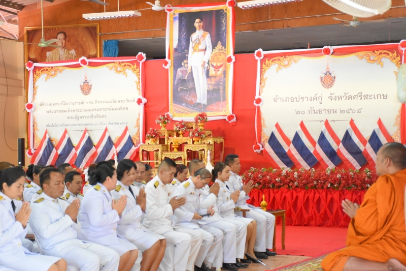 20 กันยายน 2568 เทศบาลตำบลปรางค์กู่ นำโดยนายชิษณุพงศ์ รตนะกมลเศรษฐ์ นายกเทศมนตรีตำบลปรางค์กู่ พร้อมคณะผู้บริหาร สมาชิกสภาเทศบาล ข้าราชการ พนักงานลูกจ้าง ร่วมกิจกรรมเฉลิมพระเกียรติพระบาทสมเด็จพระปรเมนทรมหาอานันทมหิดล พระอัฐมรามาธิบดินทร เนื่องในโอกาสวันพระบรมราชสมภพครบ 100 ปี 20 กันยายน 2568 ณ หอประชุมอำเภอปรางค์กู่ อำเภอปรางค์กู่ จังหวัดศรีสะเกษ