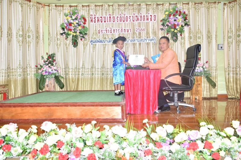 5 เมษายน 2567 เทศบาลตำบลปรางค์กู่ นำโดยนายชิษณุพงศ์ รตนะกมลเศรษฐ์ นายกเทศมนตรีตำบลปรางค์กู่ ร่วมกับกองการศึกษาจัดพิธีมอบเกียรติบัตรบัณฑิตน้อยศูนย์พัฒนาเด็กเล็กเทศบาลตำบลปรางค์กู่ ณ ห้องประชุมสภาเทศบาลตำบลปรางค์กู่