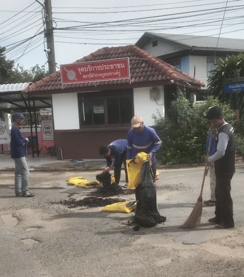 กองช่างร่วมกับงานป้องกันและบรรเทาสาธารณภัย ซ่อมแซมถนนชำรุด ดังนี้ 1.ถนนเทศบาล 11 บริเวณหลังโรงเรียนปรางค์กู่ 2 .ถนนเทศบาล 16 หน้าสถานีตำรวจภูธรปรางค์กู่ 3.ถนนพิมาย ตั้งแต่แยกพรเพ็ญไปทางชุมชนเที่ยงธรรม 4.ถนนเส้น บ้านสุโขตัดไปทางบ้านเหล็ก